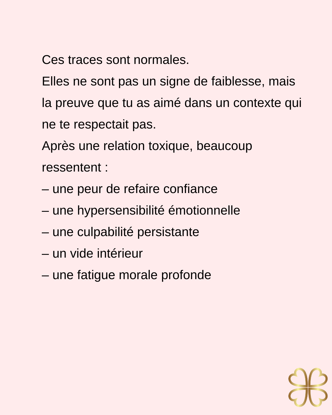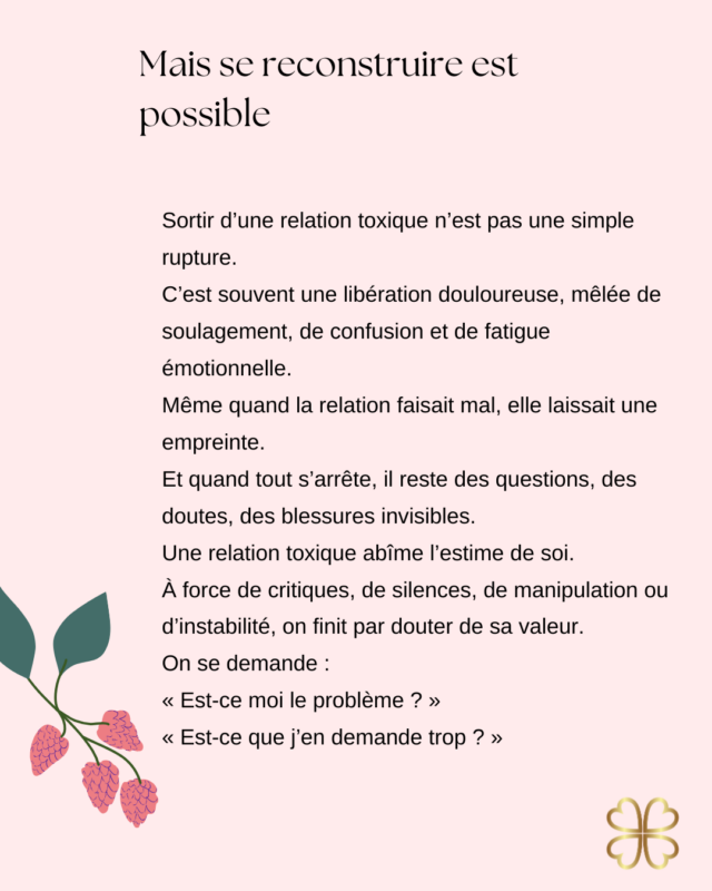 Mettre fin à une relation toxique demande un immense courage. Quitter une relation qui provoque souffrance, confusion ou instabilité émotionnelle est souvent une étape difficile mais nécessaire. Pourtant, même après la rupture, il arrive que les effets de cette relation continuent d’influencer la vie émotionnelle et relationnelle.